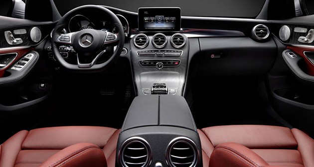 and a half million of them around the world. And now the the 4-door luxury sedan has been upgraded, the new C class with it’s S class design lines dropped about 220 pounds from its previous generation, added more luxury features and tech gadgetry, that along with more horse power – The C-class will be available in 2 different models (C300 and C400) when it hits the U.S. market next year with an all-wheel drive 4Matic drivetrains ofr both options. The C300 will be outfitted with a turbo-charged 2.0 liter four cylinder engine pushing out 235 horsepower and 273 pound-feet of torque, and the C400 4Matic with a 3.0-liter turbo V6 offering up 329 hp and 354 lb-ft of torque, both models will include seven-speed automatic transmission and 4Matic all-wheel drive. Mercedes hasn’t indicated pricing yet, we expect it will be announced closer to launch.